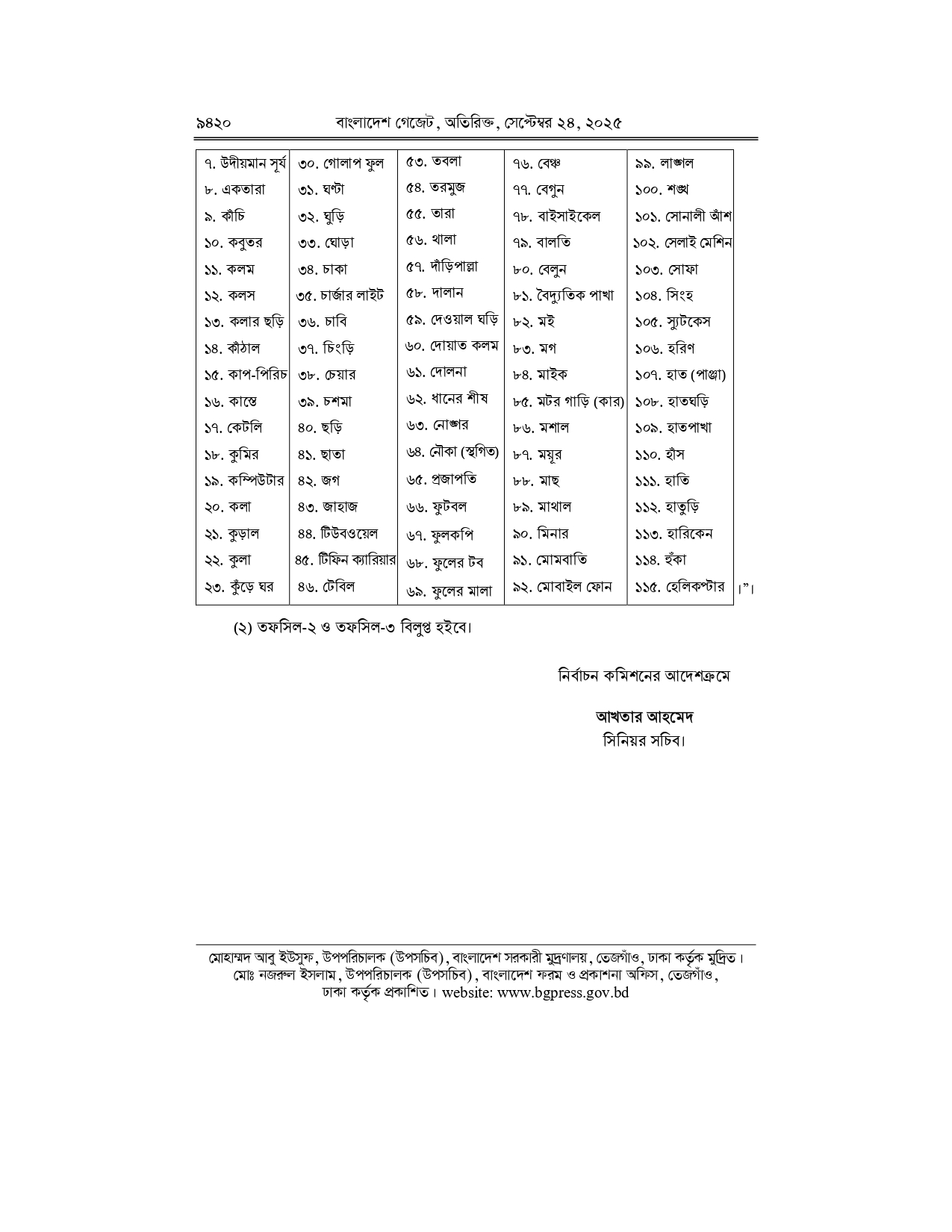 নৌকা প্রতীক স্থগিত রেখে ১১৫টি প্রতীকের তালিকা প্রকাশ করে প্রজ্ঞাপন জারি করেছে নির্বাচন কমিশন। তবে তালিকায় নেই শাপলা প্রতীক।