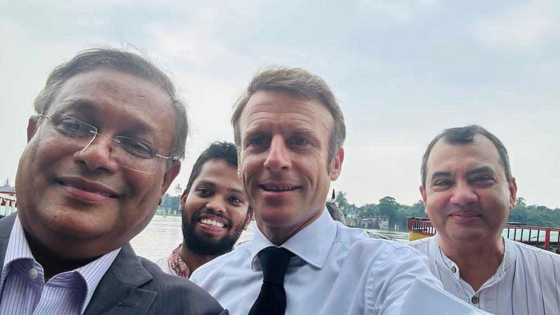 ফ্রান্সের প্রেসিডেন্ট ইমানুয়েল মাখোঁর সঙ্গে সেলফি তুলেছেন তথ্য ও সম্প্রচারমন্ত্রী ড. হাছান মাহমুদ। সোমবার (১১ সেপ্টেম্বর) তুরাগ নদীতে নৌকা ভ্রমণ শেষে হাছান মাহমুদের সেলফিতে অংশ নেন তিনি।