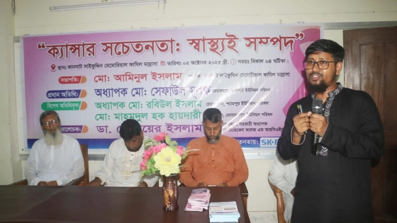 মাদ্রাসার অধ্যক্ষ আমিনুল ইসলামের সভাপতিত্বে সেমিনারে প্রধান আলোচক হিসেবে বক্তব্য রাখেন, বগুড়া টিএমএসএস মেডিকেল কলেজের ক্যান্সার বিশেষজ্ঞ ও সহকারী অধ্যাপক ডা. যোবায়ের ইসলাম। তিনি বলেন, বর্তমানে ক্যান্সার একটি জাতীয় সমস্যা। দিন দিন ক্যান্সার বেড়েই চলেছে। দেশের জনগনের ভিতর ক্যান্সারের ঝুকিসমূহ ও উপসর্গসমূহের বিষয়ে সচেতনতা বৃদ্ধি করতে হবে। জনগন যদি সচেতন হয়, তাহলে ক্যান্সার প্রতিরোধ করা যাবে। এমনকি ক্যান্সার যদি প্রাথমিক পর্যায়ে ধরাও পড়ে তবুও চিকিৎসা করে সুস্থ করে তোলা সম্ভব হবে । সেই আশা নিয়েই জনগনের মাঝে ক্যান্সার বিষয়ক এ সচেতনতা প্রোগ্রাম শুরু করেছি।