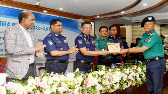 তিনি বলেন, আজকে আমরা যাদেরকে শুদ্ধাচার পুরস্কারে ভূষিত করেছি তার চেয়ে অনেক বেশি সংখ্যক পুলিশ সদস্য তাদের পেশাগত দায়িত্ব পালনের ক্ষেত্রে শুদ্ধাচারের চর্চা করে থাকেন। কারণ মাননীয় প্রধানমন্ত্রী ঘোষিত জঙ্গিবাদ-সন্ত্রাসবাদমুক্ত বাংলাদেশ গড়ার জন্য পুলিশের সকল ইউনিটের সদস্যরা একসঙ্গে কাজ করেছেন বলেই দেশে একটি স্থিতিশীল আইনশৃঙ্খলা পরিস্থিতি বজায় ছিল। ফলে দেশের সর্বক্ষেত্রে উন্নয়নের জোয়ার বইছে। দেশ এগিয়ে যাচ্ছে অপ্রতিরোধ্য গতিতে।