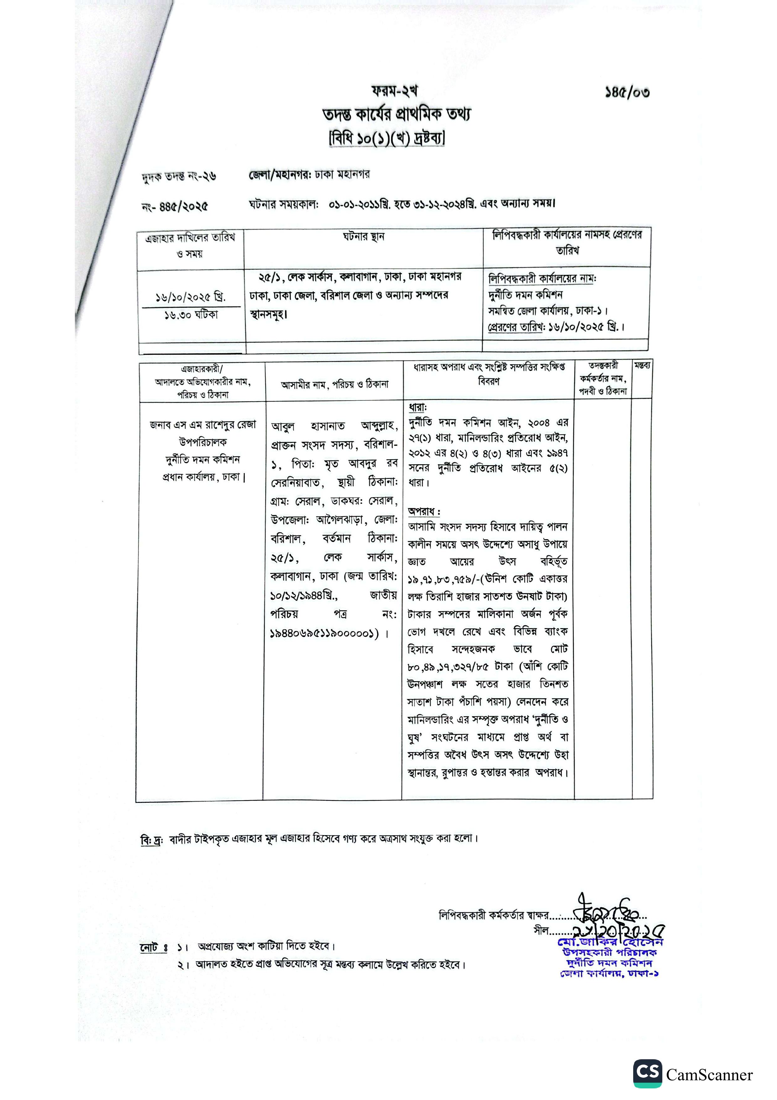 রোববার (১৯ অক্টোবর) দুদক সূত্রে এ তথ্য জানা গেছে।