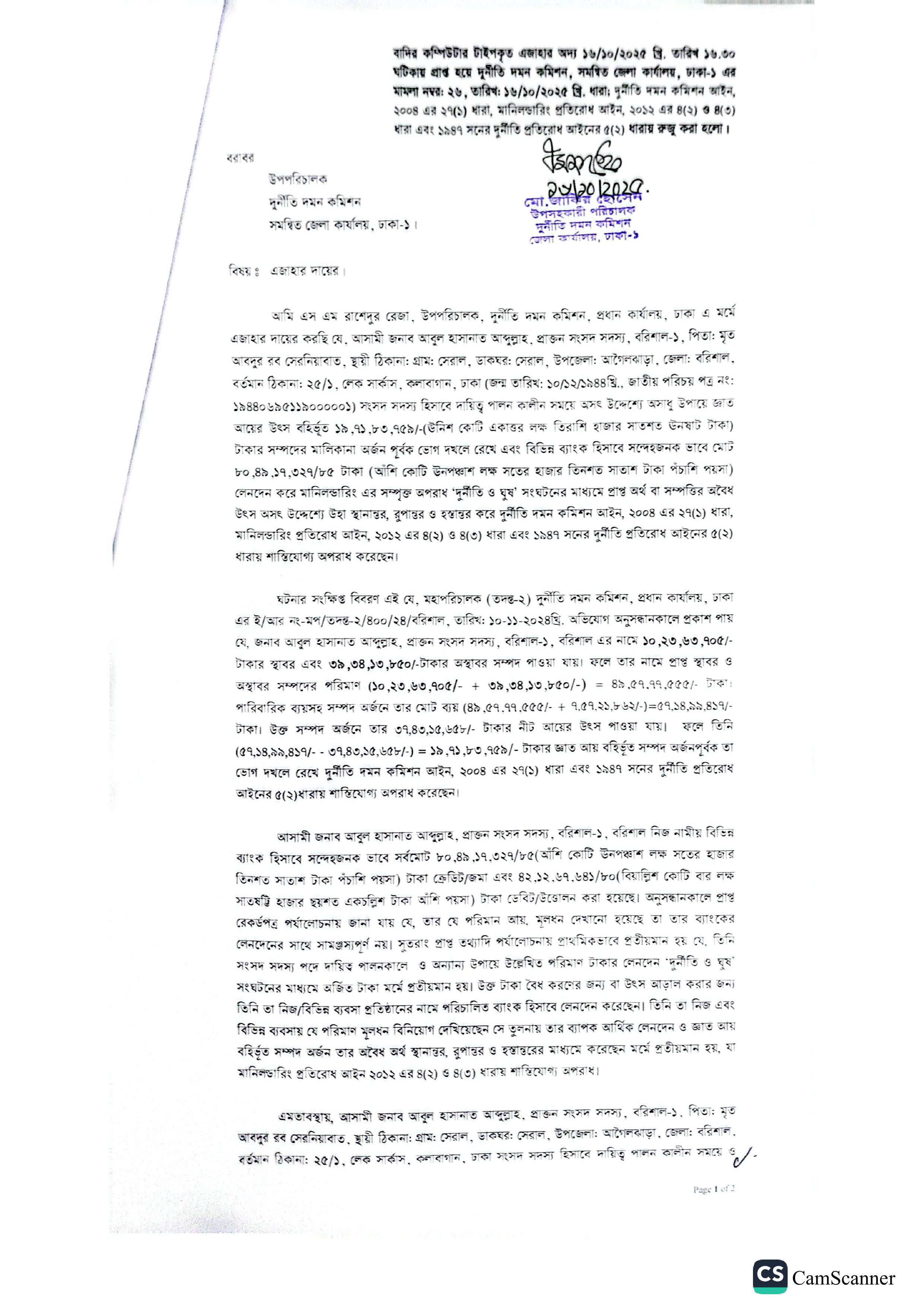 জাতীয় সংসদের সাবেক চিফ হুইপ ও বরিশাল-১ আসনের সাবেক এমপি আবুল হাসানাত আব্দুল্লাহর নামে মামলা করেছে দুর্নীতি দমন কমিশন (দুদক)। ১৯ কোটি টাকার অবৈধ সম্পদ ও বিভিন্ন ব্যাংক হিসাবে ৮০ কোটি টাকার সন্দেহজনক দেনদেনের অভিযোগে এ মামলা করা হয়েছে।