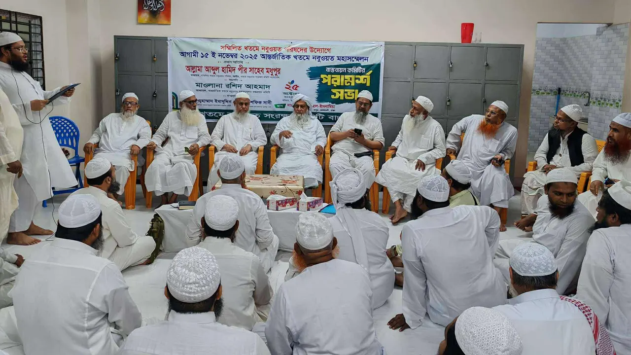 রাজধানীর জুরাইনে সম্মিলিত খতমে নবুওয়ত পরিষদ বাংলাদেশ-এর অস্থায়ী কার্যালয়ে অনুষ্ঠিত মহাসম্মেলন বাস্তবায়ন কমিটির পরামর্শ সভায় তিনি এ আহ্বান জানান। এ ছাড়া তিন দিনের কর্মসূচি ঘোষণা করেছে খতমে নবুওয়াত।
