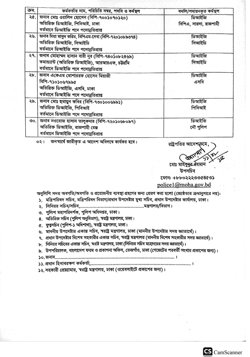 পুলিশের অতিরিক্ত ডিআইজি থেকে পদোন্নতি পাওয়া ৩০ কর্মকর্তাকে নতুন দায়িত্ব দিয়েছে সরকার।