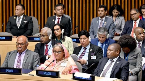 বুধবার জাতিসংঘ সদর দপ্তরে ইসিওএসওসি চেম্বারে ‘জলবায়ু ন্যায্যতা প্রদান: ত্বরান্বিত উচ্চাকাঙ্ক্ষা এবং অভিযোজন ও সবার জন্য প্রাথমিক সতর্কবার্তা বাস্তবায়ন’ শীর্ষক জলবায়ু উচ্চাকাঙ্ক্ষা শীর্ষ সম্মেলনের উচ্চ স্তরের বিষয়ভিত্তিক অধিবেশনে এ মন্তব্য করেন তিনি।