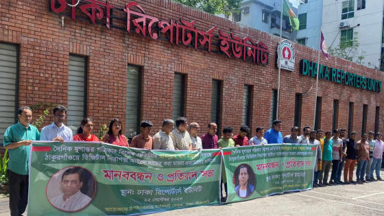 বক্তারা বলেন, ডিজিটাল নিরাপত্তা আইনের জন্য গণমাধ্যমকর্মীদের যখন তখন রাস্তায় দাঁড়াতে হচ্ছে। সংবাদ প্রকাশের জেরে দৈনিক যুগান্তরের বিশেষ প্রতিনিধি আবদুল্লাহ আল মামুনের বিরুদ্ধে ঠাকুরগাঁওয়ে মামলা করেছেন একজন এমপির কর্মী। মামলা দায়েরের ৪৯ দিন পর মামুন এ সংবাদ জেনেছেন। আমরা এই মামলা নিয়ে শঙ্কিত। তাকে হয়রানি করা হতে পারে। কিন্তু আমরা স্পষ্ট করে বলতে চাই দৈনিক যুগান্তরের আবদুল্লাহ আল মামুন কেন দেশের কোনো সাংবাদিক যদি ডিজিটাল নিরাপত্তা আইনে দায়েরকৃত মামলায় হয়রানির শিকার হন, তাহলে সাংবাদিকরা তা সহ্য করবে না।