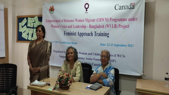 এমপাওয়ারমেন্ট অব রিটার্নি ওমেন মাইগ্রেন্ট প্রোগাম আন্ডার ওমেন’স ভয়েস অ্যান্ড লিডারশিপ- বাংলাদেশ প্রজেক্টের আওতায় শুক্রবার (২২ সেপ্টেম্বর) সকাল ১০টায় সিডব্লিউসিএসের কনফারেন্স কক্ষে ফেমিনিস্ট এপ্রোচ ট্রেনিংয়ে স্বাগত বক্তব্যে এসব কথা বলেন তিনি।