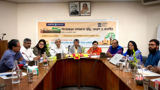বুধবার (৪ অক্টোবর) প্রেস ইনস্টিটিউট বাংলাদেশে (পিআইবি) বায়ুমণ্ডলীয় দূষণ অধ্যয়ন কেন্দ্র (ক্যাপস) এবং বাংলাদেশ রিসোর্স সেন্টার ফর ইনডিজিনাস নলেজ (বারসিক) এর যৌথ আয়োজনে আয়োজিত গোলটেবিল বৈঠকে রাজধানীর তাপমাত্রা কমাতে ১০ দফা সুপারিশ তুলে ধরা হয়।