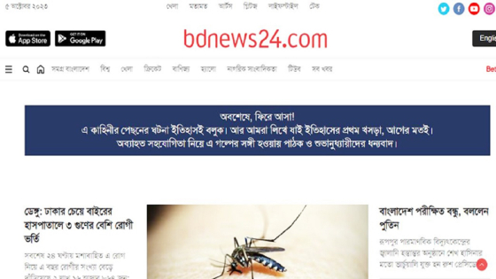 বৃহস্পতিবার (৫ অক্টোবর) সন্ধ্যা থেকে পাঠকরা নিউজপোর্টালটিতে ঢুকতে পারছেন। ওয়েবসাইটে বাংলা ও ইংরেজি উভয় ভার্সনেই সংবাদ দেখা যাচ্ছে। সাইটটি কেন বন্ধ ছিল তা জানা যায়নি। সংশ্লিষ্টরাও এ বিষয়ে স্পষ্ট করে কিছু জানাননি।