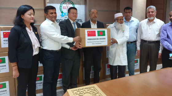 এরই ধারাবাহিকতায় চীনা দূতাবাস এনাম মেডিকেল কলেজ হাসপাতালে ৭০০ সেট ডেঙ্গু কীট দিয়েছে। যা দিয়ে ১৮ হাজারের বেশি মানুষের ডেঙ্গু পরীক্ষা করা যাবে। আগামী সপ্তাহে চীন আরও ডেঙ্গু পরীক্ষার কীট পাঠাবে।