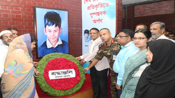 জাতির পিতা বঙ্গবন্ধু শেখ মুজিবুর রহমানের কনিষ্ঠ পুত্র শহীদ শেখ রাসেলের স্মরণে তার প্রতিকৃতিতে পুষ্পস্তবক অর্পণ করেছেন প্রতিরক্ষা মন্ত্রণালয়ের কর্মকর্তারা।