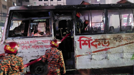 ফায়ার সার্ভিস জানায়, শনিবার রাত ৮টা থেকে ১২ নভেম্বর সকাল ৬টা পর্যন্ত উচ্ছৃঙ্খল জনতা কর্তৃক মোট ৯টি আগুনের সংবাদ পেয়েছে ফায়ার সার্ভিস।