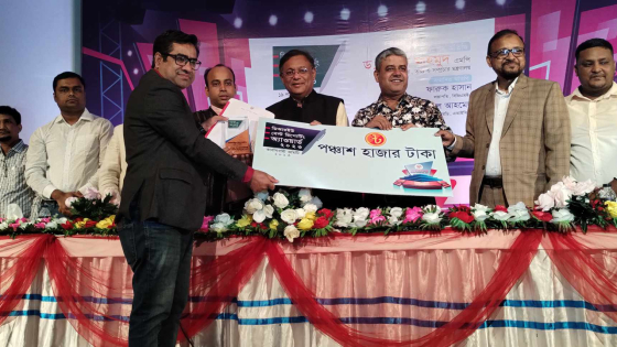আজ রোববার সেগুনবাগিচায় শিল্পকলা একাডেমির চিত্রশালা মিলনায়তনে বিজয়ীদের হাতে পুরস্কার তুলে দেন তথ্য ও সম্প্রচারমন্ত্রী ড. হাছান মাহমুদ।