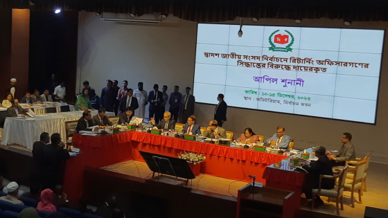 দ্বাদশ জাতীয় সংসদ নির্বাচনে মনোনয়নপত্র বাছাইয়ে রিটার্নিং কর্মকর্তাদের সিদ্ধান্তের বিরুদ্ধে প্রার্থীদের করা আপিলের শুনানি চতুর্থ দিনের মতো শুরু হয়েছে। সিদ্ধান্তের বিরুদ্ধে দায়ের করা আপিল এ শুনানি চলবে আগামী ১৫ ডিসেম্বর পর্যন্ত।