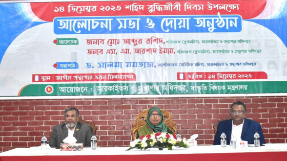 আরকাইভস ও গ্রন্থাগার অধিদপ্তর শহিদ বুদ্ধিজীবী দিবসের প্রথম প্রহরে জাতির শ্রেষ্ঠ সন্তান শহিদ বুদ্ধিজীবীদের স্মৃতির প্রতি শ্রদ্ধাঞ্জলি নিবেদনে মিরপুর শহিদজীবী স্মৃতিসৌধ ও রায়ের বাজার বধ্যভূমিতে পুষ্পস্তবক অর্পণ করে। বেলা ১১ টায় অধিদপ্তরের জাতীয় গ্রন্থাগার মিলনায়তনে আলোচনা সভা এবং শহিদ বুদ্ধিজীবীদের আত্মার মাগফেরাত কামনায় দোয়া অনুষ্ঠিত হয়।