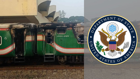 রাজধানীর তেজগাঁওয়ে মোহনগঞ্জ এক্সপ্রেস ট্রেনে আগুনের ঘটনায় চারজনের মৃত্যু হয়। এই বিষয়টিকে মার্কিন পররাষ্ট্র দপ্তরের নজরে আনতে প্রশ্ন করা করা হয় দপ্তরের মুখপাত্র ম্যাথু মিলারের কাছে।