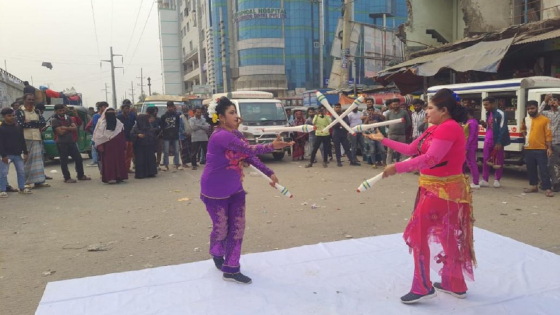 বাংলাদেশ শিল্পকলা একাডেমির আয়োজনে সোমবার ডেমরা স্টাফ কোয়ার্টার, কোনাপাড়া, লালমাটিয়া মাঠ, আড়ং, নভোথিয়েটার, বিজয় সরণি ইত্যাদি স্থানে প্রদর্শিত হয়েছে গণজাগরণের অ্যাক্রোবেটিক। অ্যাক্রোবেটিক শিল্পীরা দর্শকদের বিভিন্ন খেলা প্রদর্শন করেন।