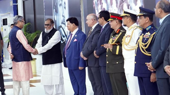 এ সময় মুক্তিযোদ্ধা মন্ত্রী আ ক ম মোজাম্মেল হক, পররাষ্ট্রমন্ত্রী ড. এ কে আব্দুল মোমেন, কূটনৈতিক কোরের ডিন, তিন বাহিনীর প্রধান, পুলিশ মহাপরিদর্শক এবং ঊর্ধ্বতন সামরিক ও বেসামরিক সামরিক কর্মকর্তারা রাষ্ট্রপতি সাহাবুদ্দিনকে স্বাগত জানান।