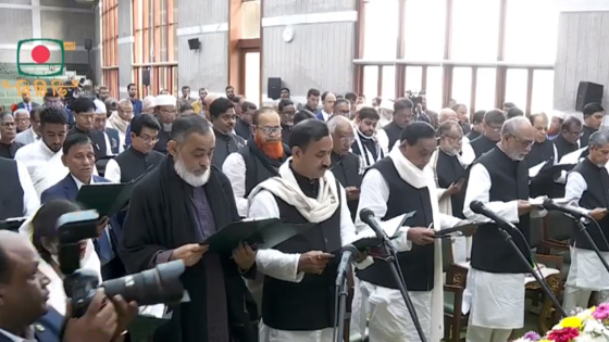 সংসদ সদস্যের শপথবাক্য পাঠ করান স্পিকার ড. শিরীন শারমিন চৌধুরী। নতুন এমপিরা একসঙ্গে সমস্বরে স্পিকারের সঙ্গে শপথবাক্য পাঠ করেন।