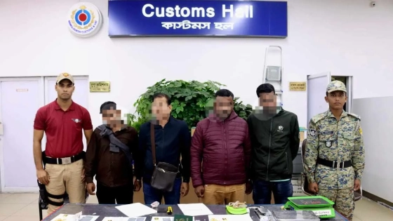 হযরত শাহজালাল আন্তর্জাতিক বিমানবন্দরে এনএসআই-কাস্টমস-এপিবিএনের যৌথ অভিযানে ২ কেজি ১০৪ গ্রাম স্বর্ণবার ও স্বর্ণের অলংকার উদ্ধার করা হয়েছে। এ সময় চার যাত্রী কৌশলে এই স্বর্ণ পাচারের চেষ্টা করলে যৌথ অভিযানে তাদের আটক করা হয়।
