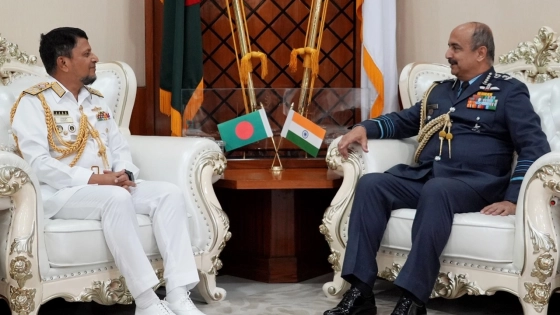 নৌবাহিনী প্রধান অ্যাডমিরাল এম নাজমুল হাসানের সঙ্গে সৌজন্য সাক্ষাৎ করেছেন সফররত ভারতের বিমান বাহিনীপ্রধান এয়ার চিফ মার্শাল ভিবেক রাম চৌধুরী।