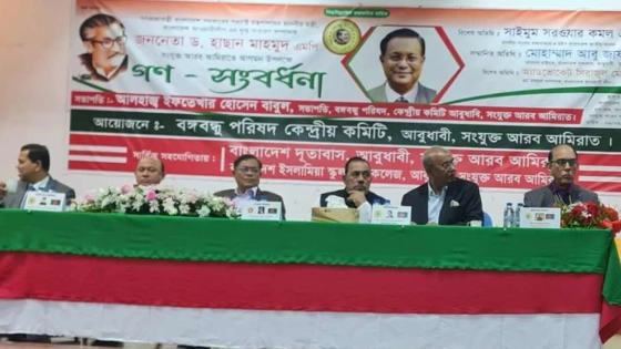 বঙ্গবন্ধু পরিষদ কেন্দ্রীয় কমিটির আবুধাবি শাখা সভাপতি ইফতেখার হোসেন বাবুলের সভাপতিত্বে এবং সাধারণ সম্পাদক নাসির উদ্দিন তালুকদারের সঞ্চালনায় জাতীয় সংসদের হুইপ সাইমুম সরওয়ার কমল, আবুধাবিতে নিযুক্ত বাংলাদেশের রাষ্ট্রদূত মো. আবু জাফর, আওয়ামী লীগের ধর্মবিষয়ক সম্পাদক অ্যাড. সিরাজুল মোস্তফা বিশেষ অতিথির বক্তব্য দেন।