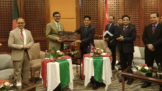 শনিবার (২৩ মার্চ) নেপালের স্থানীয় এক হোটেলে নৌপরিবহন প্রতিমন্ত্রী খালিদ মাহমুদ চৌধুরী সঙ্গে নেপালের বাণিজ্যমন্ত্রী দামোদার ভান্ডারী এ বৈঠকে মিলিত হন।