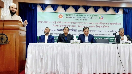 রোববার (২৪ মার্চ) রাজধানীর ইস্কাটনে বিয়াম মিলনায়তনে জাইকা প্রজেক্টের উদ্যোগে আয়োজিত ঢাকা জেলা ও মেট্রোপলিটন এলাকার খাদ্যস্থাপনায় কর্মরত খাদ্যকর্মীদের ‘নিরাপদ উপায়ে খাবার প্রস্তুত, বিক্রয় ও সংরক্ষণ’ শিরোনামে আয়োজিত প্রশিক্ষণ কর্মসূচিতে তিনি এসব কথা বলেন।