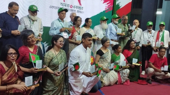 একাত্তরের ৫৩ বীর মুক্তিযোদ্ধাকে সম্মাননা জানালেন মুক্তিযোদ্ধা ও মুক্তিযুদ্ধের সংগঠন ‘আমরা একাত্তর’। ৫৩ বীর মুক্তিযোদ্ধার হাতে সম্মাননা অর্থাৎ জাতীয় পতাকা সংবলিত ক্রেস্ট তুলে দেন তরুণ প্রজন্মের প্রতিনিধিরা। এ সময় বীর মুক্তিযোদ্ধারা তরুণ প্রজন্মের হাতে তুলে দেন একটি জাতীয় পতাকা।