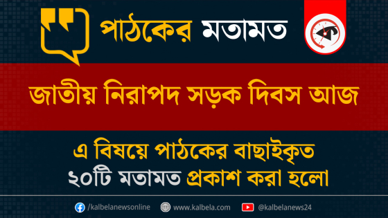 জাতীয় নিরাপদ সড়ক দিবস আজ রোববার (২২ অক্টোবর)। দেশের সড়ক-মহাসড়ক প্রতিনিয়ত তাজা রক্তে লাল হচ্ছে। কিন্তু এ পরিস্থিতি থেকে রেহাই পাওয়ার উপায় কী? কী করে কমবে সড়কে প্রাণহানি?- এ বিষয়ে কালবেলার ফেসবুক পেজে (Kalbela Online) পাঠকের মতামত থেকে বাছাইকৃত মতামত প্রকাশ করা হলো।