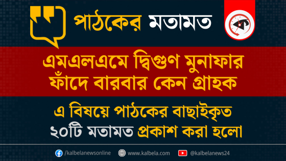 ‘এমএলএমে দ্বিগুণ মুনাফার ফাঁদে বারবার কেন গ্রাহক’ এ বিষয়ে কালবেলার ফেসবুক পেজে (Kalbela Online) পাঠকের মতামত থেকে বাছাইকৃত মতামত প্রকাশ করা হলো।