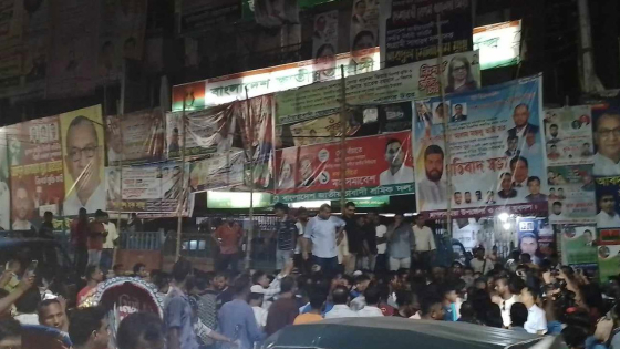 সন্ধ্যায় পর কার্যালয়ের সামনে কয়েক হাজার নেতাকর্মী জড়ো হয়। তারা মুহুর্র মুহুর্র করতালি দিয়ে শ্লোগান দিচ্ছে ‘এক দফা এক দাবি শেখ হাসিনা এখনই যাবি’।