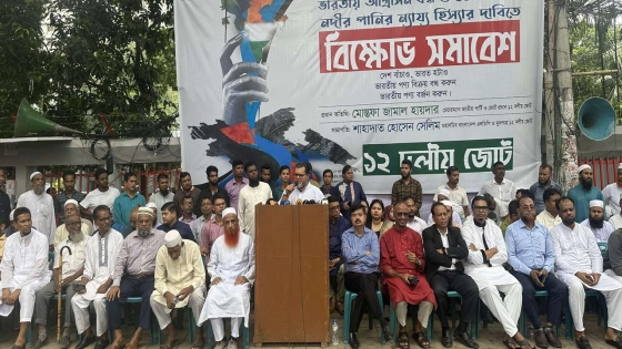 ‘ভারতীয় আগ্রাসন বন্ধ। ৫৪টি অভিন্ন নদীতে পানির ন্যায্য হিস্যা আদায়ের দাবি। ভারতীয় পণ্য বিক্রয় বন্ধ এবং ভারতীয় পণ্য বর্জনের ডাক’ শীর্ষক জাতীয় প্রেসক্লাবের সামনে ১২ দলীয় জোটের উদ্যোগে বিক্ষোভ সমাবেশ এবং প্রতিবাদ মিছিল অনুষ্ঠিত হয়।