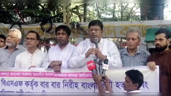 মঙ্গলবার (১০ সেপ্টেম্বর) বিকেলে জাতীয় প্রেস ক্লাবের সামনে বিক্ষোভ মিছিলপূর্ব এক সংক্ষিপ্ত সমাবেশে সভাপতির বক্তব্যে এ আহ্বান জানান তিনি। ভারত সীমান্তে বার বার বাংলাদেশি নিরীহ মানুষ হত্যার প্রতিবাদে ভাসানী অনুসারী পরিষদের উদ্যোগে এই কর্মসূচি পালিত হয়।