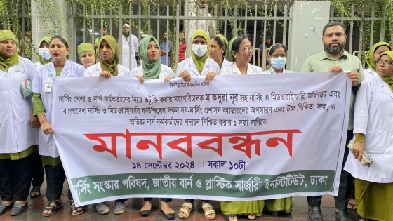 এদিকে ঢাকা মেডিকেলের সামনেও মানববন্ধনের উদ্দেশ্যে নার্সদের জমায়েত হতে দেখা গেছে।