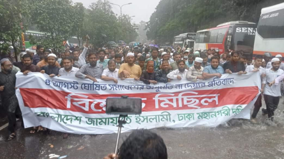 কেন্দ্রীয় নির্বাহী পরিষদের সদস্য ও ঢাকা মহানগরী দক্ষিণের আমির নূরুল ইসলাম বুলবুলের নেতৃত্বে বিক্ষোভ মিছিলটি শুক্রবার (৪ আগস্ট) রাজধানীর প্রাণকেন্দ্র মতিঝিল থেকে শুরু হয়ে গুরুত্বপূর্ণ সড়ক প্রদক্ষিণ করে কমলাপুর রেলস্টেশনের সামনে প্রতিবাদ সমাবেশের মাধ্যমে শেষ হয়।