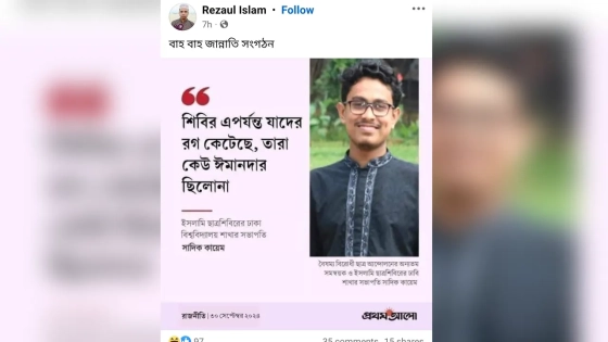 এই পোস্ট একটি স্পষ্ট মিথ্যাচার ও ষড়যন্ত্রমূলক পোস্ট। আমাকে ও বাংলাদেশ ইসলামী ছাত্রশিবিরকে হেয় প্রতিপন্ন ও অপমান করার জন্যে এবং সামাজিক যোগাযোগমাধ্যমে মিথ্যা তথ্য ছড়িয়ে ঢাকা বিশ্ববিদ্যালয় ক্যাম্পাসে বাংলাদেশ ইসলামী ছাত্রশিবির ও অন্যান্য দল মতের মানুষদের মাঝে সাম্প্রদায়িক শত্রুতা, ঘৃণা, বিদ্বেষ সৃষ্টি করে বিশৃঙ্খলা ঘটিয়ে আইন-শৃঙ্খলার অবনতি ঘটানোর জন্যে ষড়যন্ত্রমূলকভাবে উক্ত পোস্টটি করা হয়েছে। পোস্টটি এনোনিমাস (বেনামে) করা হয়েছে এবং পোস্টকারী উক্ত গ্রুপের অ্যাডমিনদের পরিচিত। আমার জান, মাল ও সম্মানের ক্ষতি করার জন্যে ওই মিথ্যা প্রচারণা চালানো হচ্ছে।