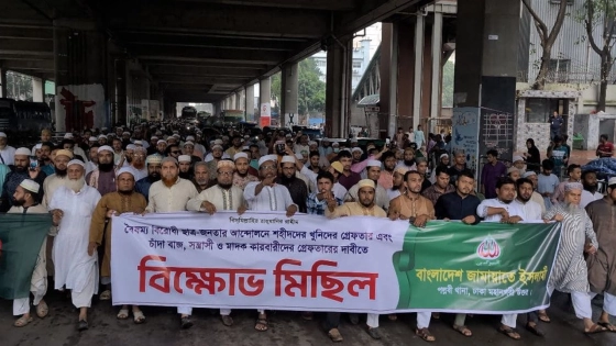 বৈষম্যবিরোধী ছাত্র-জনতার আন্দোলনে গণহত্যাকারী খুনিদের গ্রেপ্তার, চাঁদাবাজি বন্ধ ও দ্রব্যমূল্যের সিন্ডিকেটদের গ্রেপ্তারের দাবিতে এক বিক্ষোভ মিছিলের আয়োজন করেন বাংলাদেশ জামায়াতে ইসলামীর ঢাকা মহানগরী উত্তরের পল্লবী অঞ্চল।