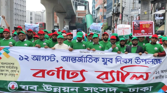 জাতিসংঘ ঘোষিত আন্তর্জাতিক যুব দিবস পালন উপলক্ষে বর্ণাঢ্য র্যালি করেছে যুব উন্নয়ন সংসদ ঢাকা। রোববার (১২ আগস্ট) বর্ণাঢ্য র্যালিটি রাজধানীর জাতীয় প্রেস ক্লাবের সামনে থেকে শুরু হয়ে পল্টন হয়ে গুরুত্বপূর্ণ সড়ক প্রদক্ষিণ করে বিজয়নগর মোড়ে শেষ হয়।