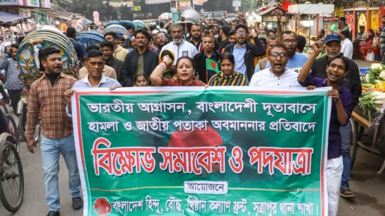 ভারতীয় আগ্রাসন, বাংলাদেশ দূতাবাসে হামলা এবং জাতীয় পতাকা অবমাননার প্রতিবাদে রাজধানীতে বাংলাদেশ হিন্দু বৌদ্ধ খ্রিস্টান কল্যাণ ফ্রন্ট সূত্রাপুর থানা শাখার উদ্যোগে বিক্ষোভ সমাবেশ ও পদযাত্রা অনুষ্ঠিত হয়েছে।