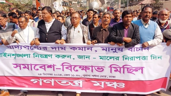 দ্রব্যমূল্যের লাগামহীন ঊর্ধ্বগতি নিয়ন্ত্রণ, মানুষের জান-মালের নিরাপত্তা নিশ্চিতসহ জনদুর্ভোগ কমানোর দাবিতে সমাবেশ ও বিক্ষোভ মিছিল করেছে গণতন্ত্র মঞ্চের নেতাকর্মীরা। মঙ্গলবার (২৪ ডিসেম্বর) বেলা ১১টার দিকে পুরানা পল্টন মোড়ে তারা এ সমাবেশ ও পরে বিক্ষোভ মিছিল করেন।