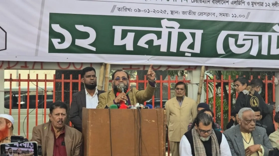 বৃহস্পতিবার (০৯ জানুয়ারি) জাতীয় প্রেস ক্লাবের সামনে এক বিক্ষোভ সমাবেশে এ কথা বলেন তিনি। দ্রুত নির্বাচনের রোডম্যাপ ঘোষণা, ফ্যাসিস্ট আওয়ামী স্বৈরাচারের রাজনৈতিক ও প্রশাসনিক দোসরদের গ্রেপ্তার ও বিচার দাবিতে ১২ দলীয় জোট এই কর্মসূচির আয়োজন করে। এতে প্রধান অতিথির বক্তব্য দেন ১২ দলীয় জোট প্রধান ও জাতীয় পার্টির (কাজী জাফর) মোস্তফা জামাল হায়দার।
