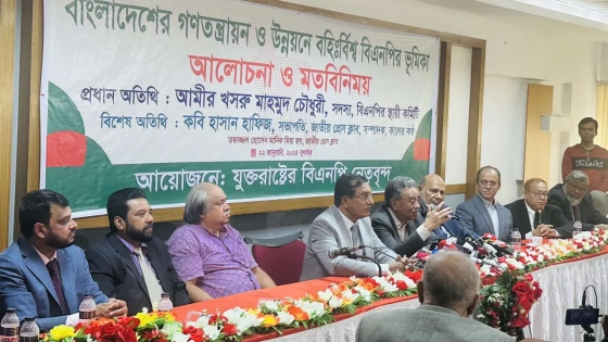 বুধবার (২২ জানুয়ারি) দুপুরে রাজধানীতে এক আলোচনা সভায় প্রধান অতিথির বক্তব্যে তিনি এসব কথা বলেন। জাতীয় প্রেস ক্লাবের তফাজ্জল হোসেন মানিক মিয়া হলে ‘বাংলাদেশের গণতন্ত্রায়ন ও উন্নয়নে বহির্বিশ্ব বিএনপির ভূমিকা’ শীর্ষক আলোচনা ও মতবিনিময় সভার আয়োজন করে যুক্তরাষ্ট্র বিএনপির নেতারা।