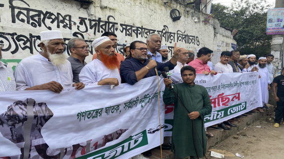অন্য নেতৃবৃন্দ বলেন, বিএনপিসহ বড় বড় দলগুলোকে বাদ দিয়ে ছোট ছোট কিছু তাবেদার দলকে সঙ্গে নিয়ে সংবিধানের দোহাই দিয়ে এই সরকারের অধীনে সুষ্ঠু নিরপেক্ষ ও শান্তিপূর্ণ নির্বাচনের নাটক করার স্বপ্ন ইতোমধ্যে দুঃস্বপ্নে পরিণত হয়েছে। আরও একবার প্রমাণ হতে চলেছে, জনগণের বিপক্ষে দাঁড়িয়ে গায়ের জোরে চিরকাল ক্ষমতা কুক্ষিগত করে রাখা যায় না। জনগণ অধিকার আদায়ের সংগ্রমে ঝাঁপিয়ে পড়লে যত বড় স্বৈরাচার হোক ক্ষমতার মসনদ তাসের ঘরের মতো ভেঙে পড়ে।