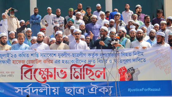 উল্লেখ্য, গত ২৮ জুলাই ঢাকার গুলিস্তানে যুবলীগ-ছাত্রলীগ-স্বেচ্ছাসেবক লীগের শান্তি সমাবেশে নৃশংসভাবে খুন করা হয় মাদ্রাসা শিক্ষার্থী হাফেজ রেজাউল করিমকে।