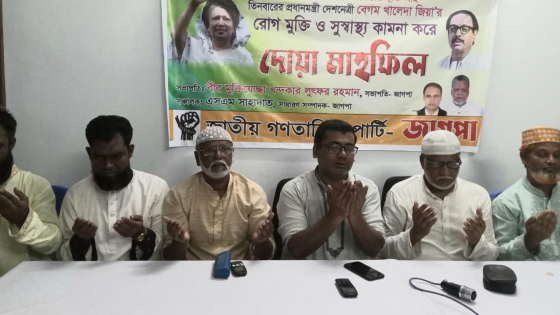 পরে খালেদা জিয়ার আশু রোগমুক্তি ও দীর্ঘায়ু কামনায় বিশেষ মোনাজাত করা হয়। এতে খন্দকার লুৎফর ছাড়াও দলের সাধারণ সম্পাদক এস এম শাহাদাত, সহসভাপতি মুন্সী মফজুলু ইসলাম, যুগ্ম সাধারণ সম্পাদক আওলাদ হোসেন শিল্পী, সাইফুল আলম, ঢাকা মহানগর সভাপতি মো. হোসেন মোবারক, কেন্দ্রীয় নেতা রায়হান, হুমায়ুন ইসলাম, মো. আফতাব হোসেন প্রমুখ।