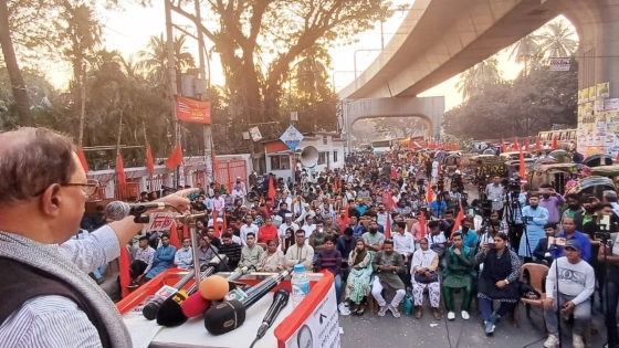 শনিবার (১৫ ফেব্রুয়ারি) জাতীয় প্রেস ক্লাবের সামনে এক সমাবেশে এসব কথা বলেন তিনি। দ্রব্যমূল্যের লাগামহীন ঊর্ধ্বগতি নিয়ন্ত্রণ, ভ্যাট ও করের বোঝা থেকে মানুষ বাঁচানো, গণহত্যার বিচার ও ন্যায়বিচার নিশ্চিত করা এবং দ্রুত সংস্কার সম্পন্ন করে জাতীয় নির্বাচনের দাবিতে বিপ্লবী ওয়ার্কার্স পার্টির ঢাকা মহানগর কমিটির উদ্যোগে এ সমাবেশ অনুষ্ঠিত হয়।