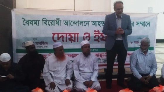 বৈষম্যবিরোধী আন্দোলনে আহতদের উদ্দেশ্যে বিএনপির স্বাস্থ্যবিষয়ক সম্পাদক ডা. রফিকুল ইসলাম বলেছেন, আপনারা যেই ফ্যাসিস্ট সরকারকে বিতাড়িত করেছেন, যারা আপনাদের চিকিৎসা প্রদানে বাধাদান করেছে তাদের অনেকে এখনো স্বাস্থ্য খাতে বহাল তবিয়তে আছেন। এই বিষয়গুলো স্বাস্থ্য খাতে বিশৃঙ্খলা সৃষ্টি করছে। এসব ফ্যাসিস্ট সরকারের প্রেতাত্মাদের দূর করতে আপনাদের আমাদের সবাইকে এক হয়ে কাজ করতে হবে।