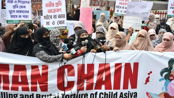 ধর্ষণ নামক ব্যাধি থেকে মুক্তি পেতে ৫ দফা দাবিতে এবং শিশু আছিয়াকে পাশবিক নির্যাতনের মাধ্যমে হত্যার প্রতিবাদে মানববন্ধন কর্মসূচি পালন করেছে বাংলাদেশ জামায়াতে ইসলামীর মহিলা বিভাগ।