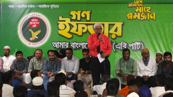 আমার বাংলাদেশ (এবি) পার্টি ঢাকা মহানগর দক্ষিণের যুগ্ম আহ্বায়ক আব্দুল হালিম খোকনের সভাপতিত্বে ও কেন্দ্রীয় সহকারী শিক্ষাবিষয়ক সম্পাদক ফয়সল মোহাম্মদ মনিরের সঞ্চালনায় গণইফতারে বিশেষ অতিথির বক্তব্য রাখেন পার্টির কেন্দ্রীয় ভাইস চেয়ারম্যান বিএম নাজমুল হক ও জাতীয় নির্বাহী পরিষদ সদস্য ইঞ্জিনিয়ার মোহাম্মদ লোকমান। বক্তব্য রাখেন ঢাকা মহানগর দক্ষিণ যুগ্ম সদস্য সচিব বারকাজ নাসির আহমদ, পল্টন থানা আহ্বায়ক আবদুল কাদের মুন্সী ও যাত্রাবাড়ী থানার আহ্বায়ক আরিফ সুলতান।